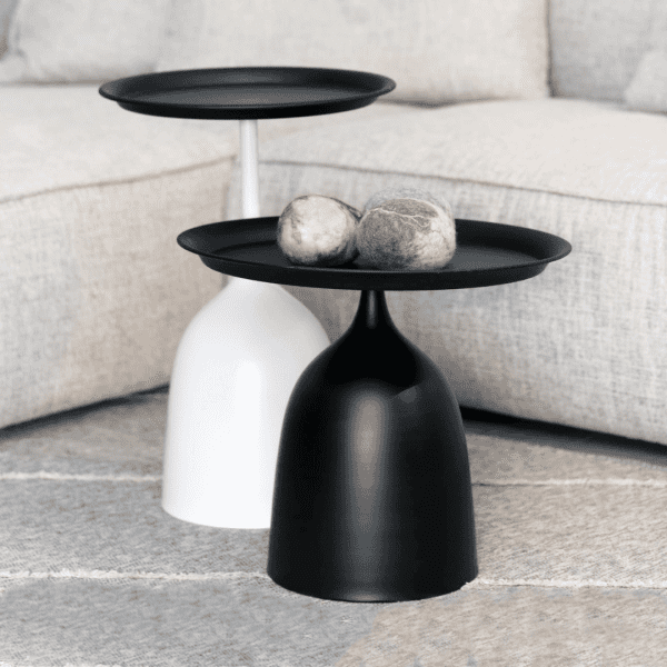 סט שולחנות קונוס מתכת שחור-לבן