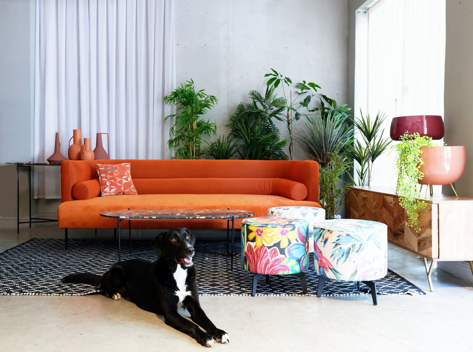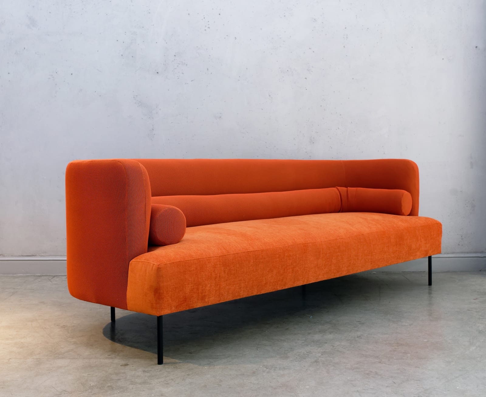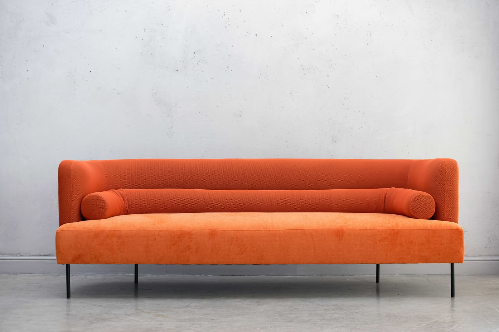 ספה מתוקה ומעוגלת עם כרית נקניק מפנקת לנוחות מירבית ומראה מהמם, מצולמת בבדים סינטטיים רחיצים.